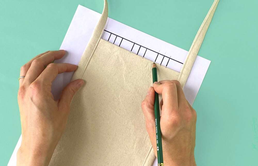 Cut 2: 9”x6” rectangles of fabric using pdf template