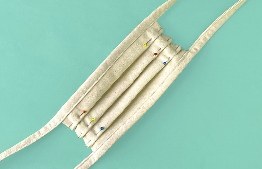 Sew around entire edge of mask, being careful to avoid pins when sewing over the pleats