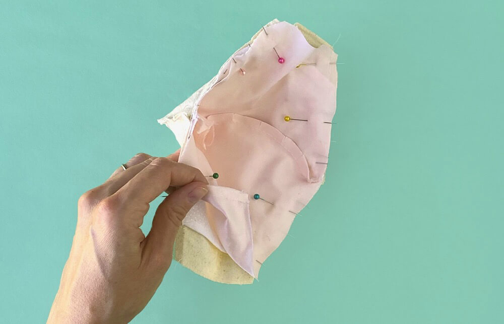 With right sides together, sew along curved edges of all pieces, and clip seams.