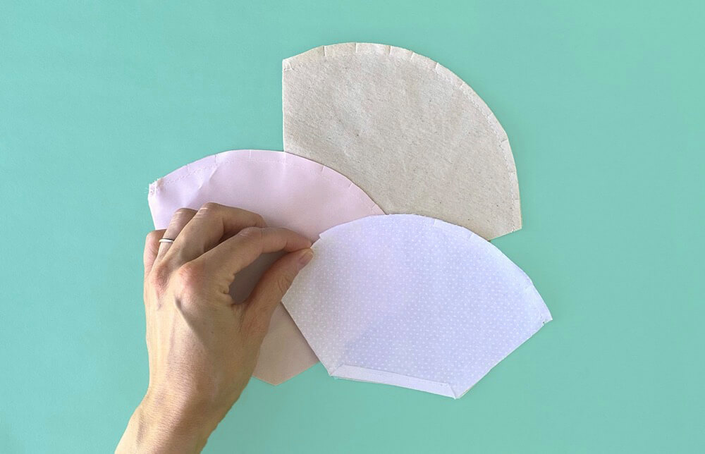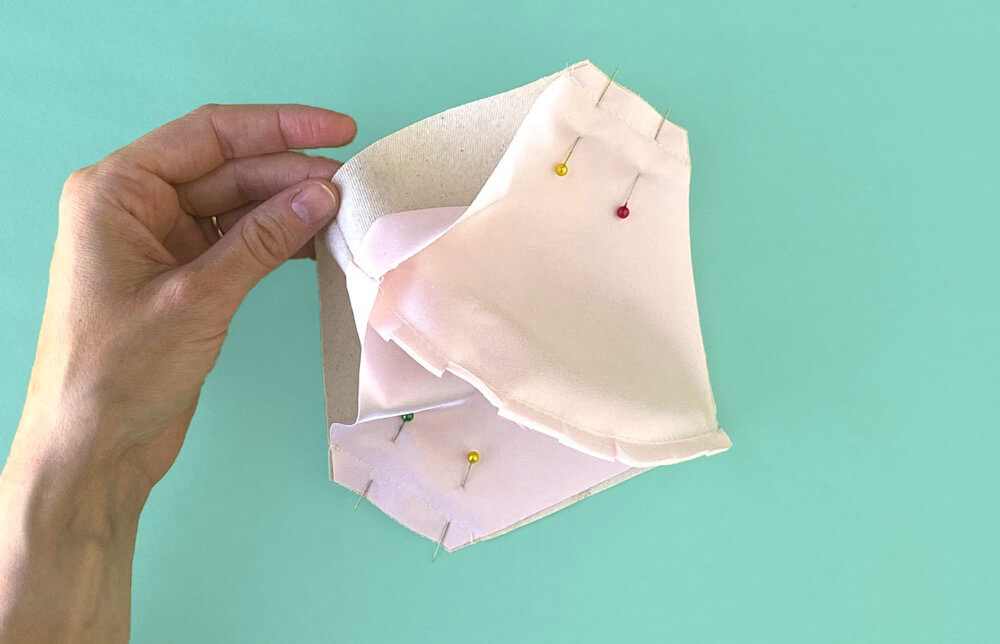 With right sides together, sew along curved edges of all pieces and clip seams.